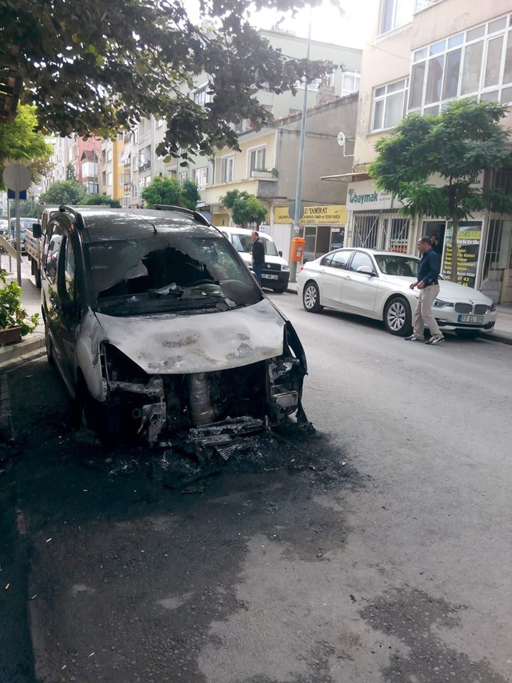 Sabah erken saatlerde kimliği belisiz kişilerce yanıcı madde dökülerek ateşe verilen araç itfaiyein çabaları ile büyümeden söndürüldü. Yanan araç kullanılamaz hale geldi.