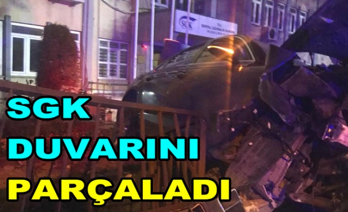Alınan bilgilere göre, seyir halindeyken kontrolden çıkan bir otomobil, Sosyal Sigortalar Müdürlüğü binasının duvarına büyük bir hızla çarptı. Çarpmanın etkisiyle binanın duvarı yıkılırken araçta bulunan 3 kişi yaralandı.