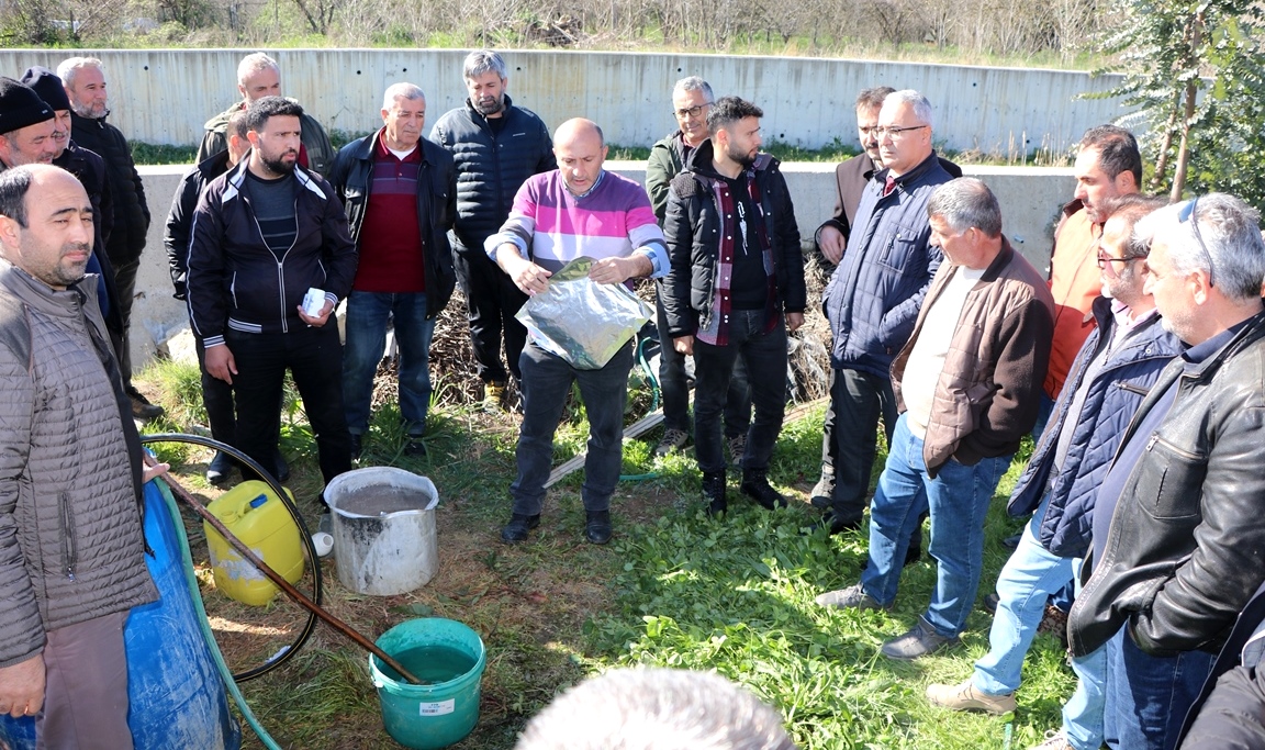 Proje kapsamında dağıtımı yapılan Entomopatojen nematodun uygulaması İl Müdürlüğü Bitkisel Üretim ve Bitki Sağlığı Şube Müdürlüğü teknik ekipleri tarafından Kadıköy beldesinden bir çiftçinin kesme çiçek serasında projeden yararlanacak çiftçilere uygulamalı olarak gösterildi.