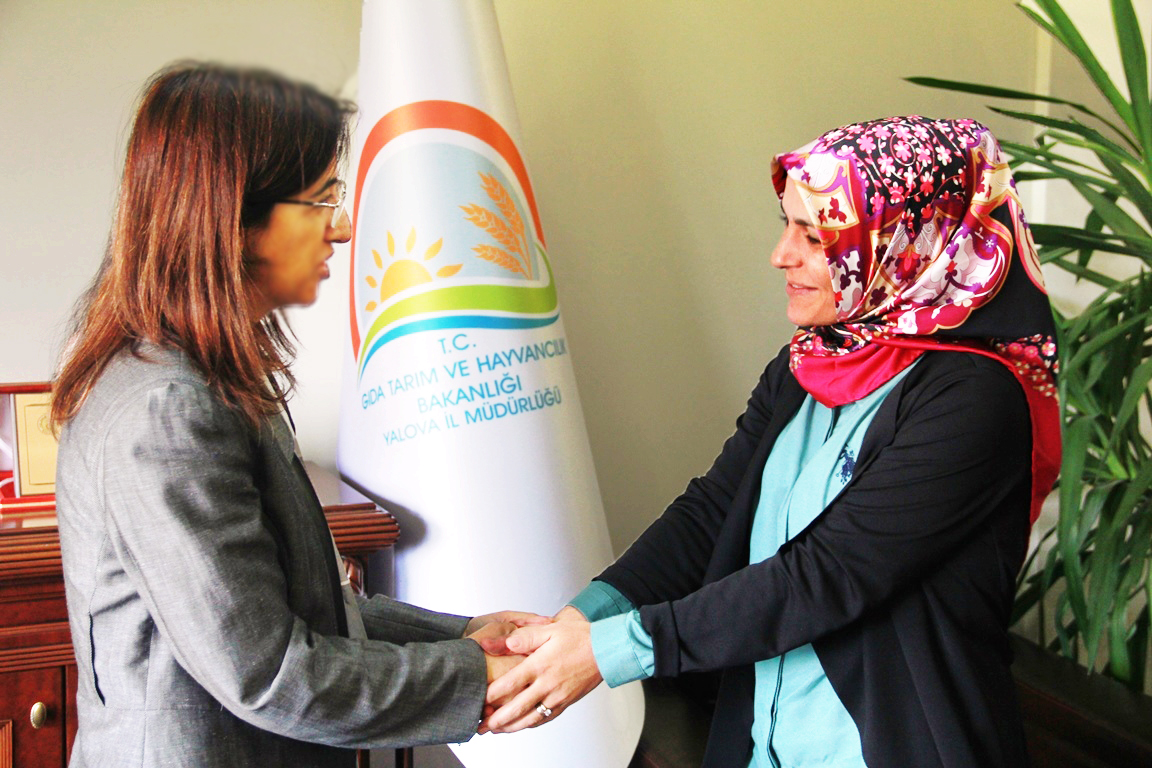 İl Gıda Tarım ve Hayvancılık Müdürlüğündeki ziyaretinde kabul ettiği kadın çiftçi Müyesser Martı'ya çiçek takdim eden Vali Yılmaz Müyesser Martı'ya başarılar dileyerek Yalova'lı kadın çiftçilere projenin örnek olmasını ve kadın girişimcilerin sayısının artmasını beklediğini dile getirdi.
