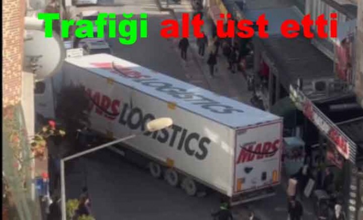 Yalova’da şehir içi trafik düzenini zorlayan olay, gün içinde yaşandı. Belirli saatler dışında uzun araçların girişinin yasak olduğu İsmet Acar Caddesi’ne giren bir tır sürücüsü, Çeşme Sokak’a dönüş yapmak istedi. Ancak sokağın dar yapısı nedeniyle manevra yapamayan sürücü, yolu tamamen kapattı.