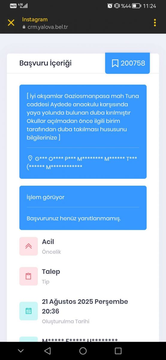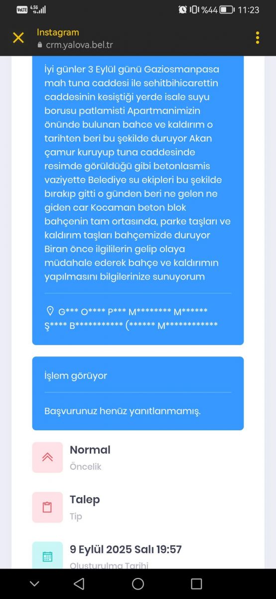 Vatandaş Servet K., “21 Ağustos 2025 tarihinde 200758 numaralı başvuru, 9 Eylül 2025 tarihinde ise 204240 numaralı başvuru Yalova Belediyesi’ne yapıldı. Ancak aradan geçen haftalara rağmen hiçbir işlem başlatılmadı. 153 ihbar hattını defalarca aramamıza rağmen sürekli ‘işlemleriniz sırada’ denildi” sözleriyle yaşanan ihmalin altını çizdi.