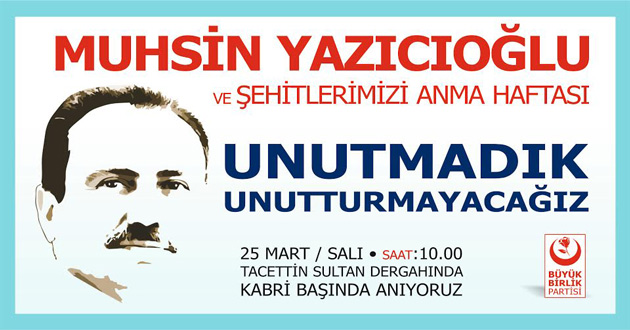 BBP’den yapılan açıklamada “Şehit Liderimiz Muhsin Yazıcıoğlu ve son yolculuğuna beraber çıktığı yol arkadaşlarını, şehadetlerinin 5. sene-i devriyesinde anıyoruz” denildi.